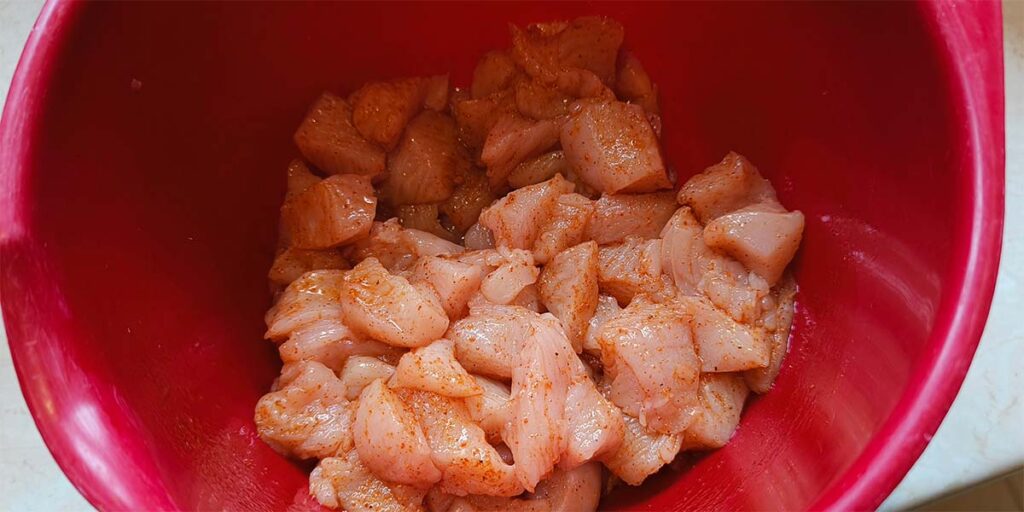 • ok. 500 g piersi z kurczaka lub indyka