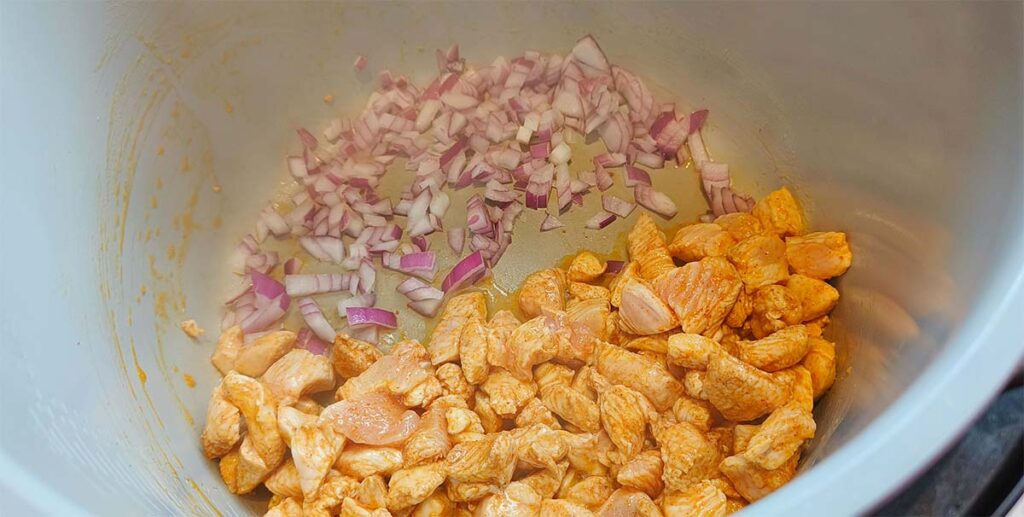 Ustawiamy w multicookerze program SEAR/SAUTE (MD/HI).